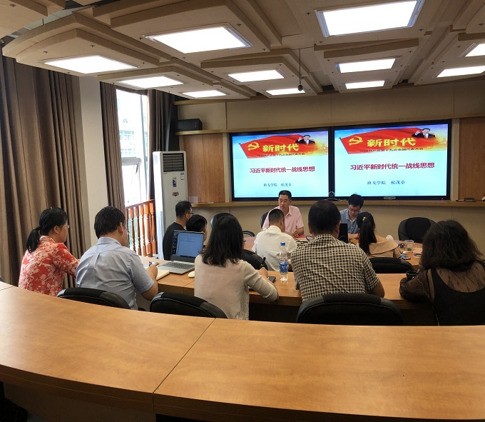 首先,学院党总支组织与统战委员、副院长侯茂章同志给全体党员上了题为“习近平新时代统一战线思想”的党课。侯茂章在回顾我党统一战线发展历史的基础上,从指导思想、宏伟目标、战略地位、主要特征、工作方针和工作的根本方法等方面,系统地阐述了习近平新时代统一战线理论,并提出认真做好学院统战工作,欢迎党外人士为学院发展献计献策。 随后,彭金波领学了习近平“在中央政协工作会议暨庆祝中国人民政治协商会议成立70周年大会上的讲话”精神。他指出,学院统战工作是党建工作的重要内容,对于学院各项事业发展的重要作用,我们要提高思想认识,要从协调推进“四个全面”战略布局、维护意识形态安全的高度,把握形势,加强队伍建设,开创学院统战工作新局面。