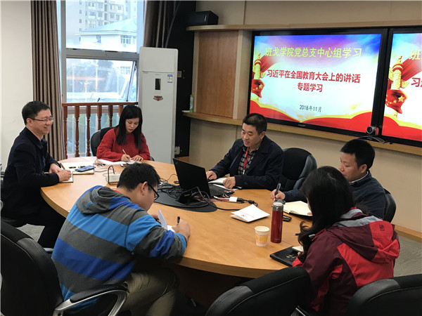 2018年11月28日下午,班戈学院党总支在致远楼四楼视频会议室召开中心组专题学习会议。党总支中心组全体成员参加了学习,会议由院党总支书记彭金波主持。