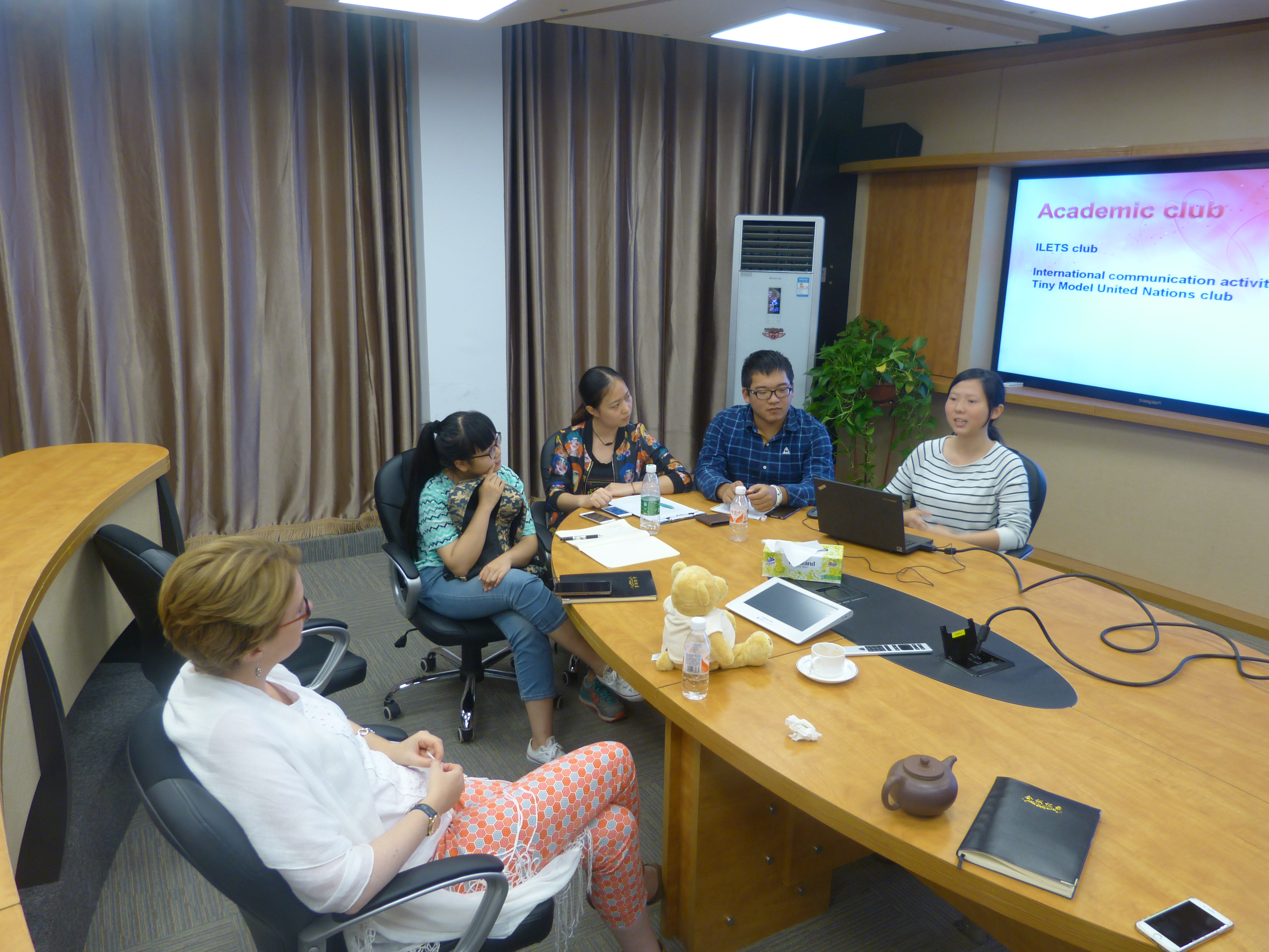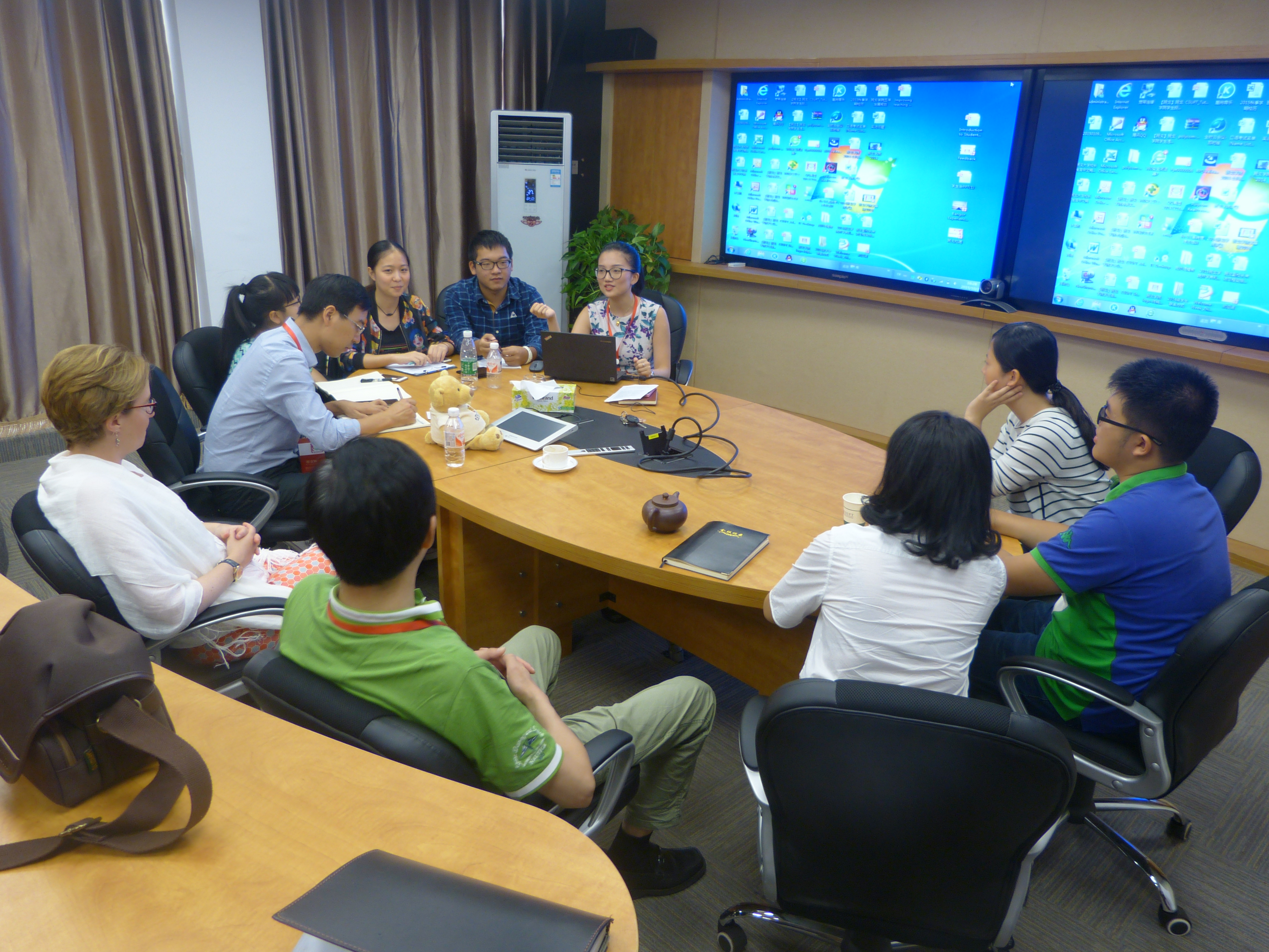 2015年10月22日,班戈学院院长阳志清、副书记张潇、程含林老师、学工办主任王德明、辅导员王依、辅导员张宇及学生代表唐安然、李雅欣、陈汉卿、陈宸、袁昊琨、黄旭颖与英方班戈大学副校长Carol Tully进行了一次交流会议。