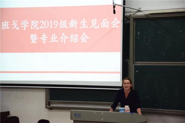 凡红说道,同学们要前承优秀学长学姐,继续班戈的辉煌,并且在接下来四年一起努力。米范维·戴维斯表示第一次见到班戈2019级新生很高兴。