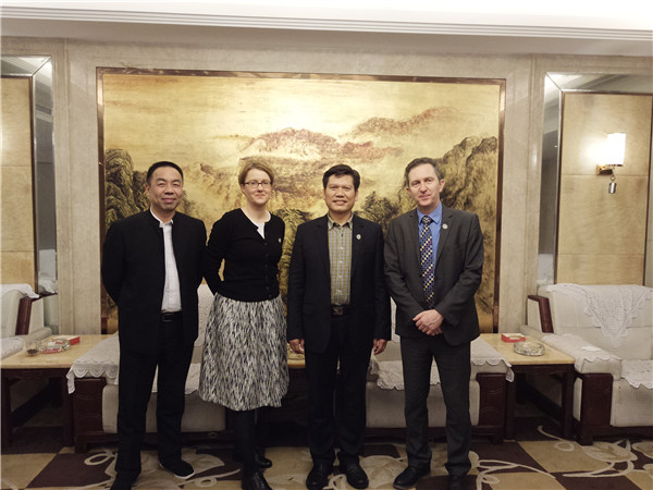 28日下午,班戈学院副院长侯茂章向奥利弗•滕布尔汇报了班戈学院一年来的教学情况、质量监控、科研、学生成长及审核评估等方面的工作;党总支副书记曾文则在研究生院会议室向卡罗尔•塔莉汇报了班戈学学生工作机制、现状及规划。