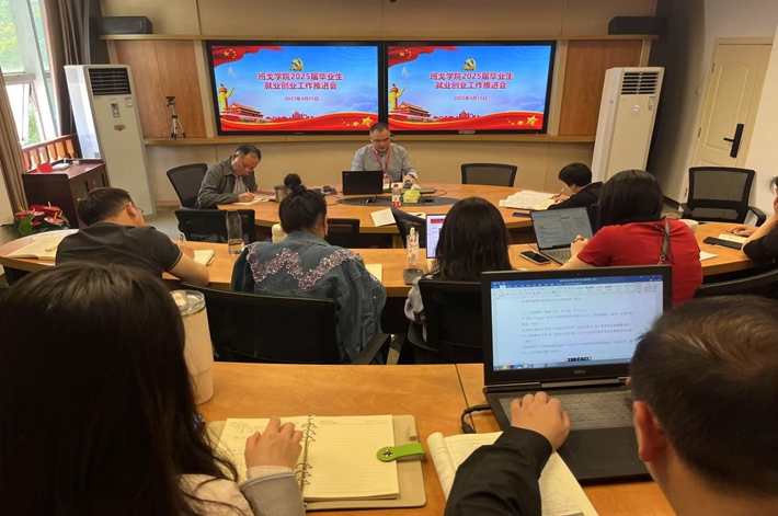 邓天文首先传达了学校2025届毕业生就业创业工作推进会的会议精神,要求全院上下严格根据仇怡校长会上所做指示坚决落实学校提出的“稳就业”、“保就业”核心任务,将就业创业工作作为学院落实立德树人根本任务的重要抓手。他表示,面对当前就业形势的复杂性和严峻性,全院上下需提高政治站位,凝聚共识,以“全员参与、全程服务、全方位联动”的工作机制,全力护航毕业生就业创业。结合学院实际情况,院长对下一阶段工作作出具体部署:一是精准掌握就业数据,以及毕业生考研情况;二是优化就业指导服务,尽快召开毕业生就业和创业指导会议,加强就业风险防范尤其是防范就业诈骗,鼓励动员学生海外申研;三是拓宽就业渠道,组织毕业生参加各类就业大会,同时尽快落实访企拓岗;四是对毕业生留湘率进行摸底。