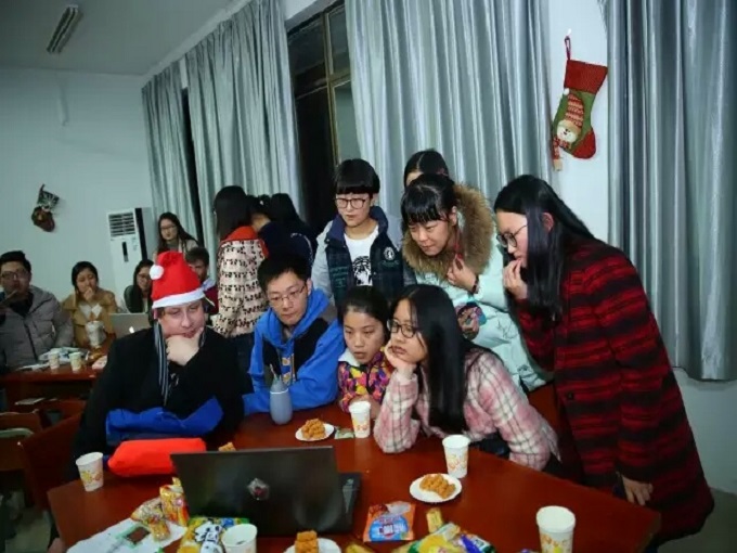 班戈大学校长John Hughes发来圣诞贺电,还有外教们的祝愿。游戏一是gesticulate you to guess,利用动作语言向下一位伙伴表达所给词,大家的合作perfect哦!游戏二是movie list,大家分小组表演圣诞电影片段,其中基情满满啊~~~如果圣诞老人都像他们这么可耐,那么我们光是舔屏过节就很幸福了。可爱的小红帽们为我们精心准备了此次晚会,辛苦了!